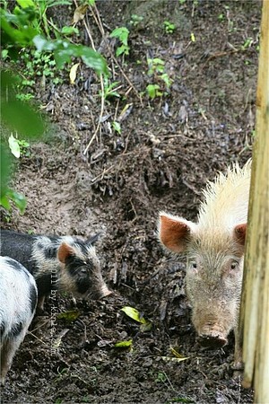 ![]() Loose pig family around the house (Freilaufende Schweine-Familie) |